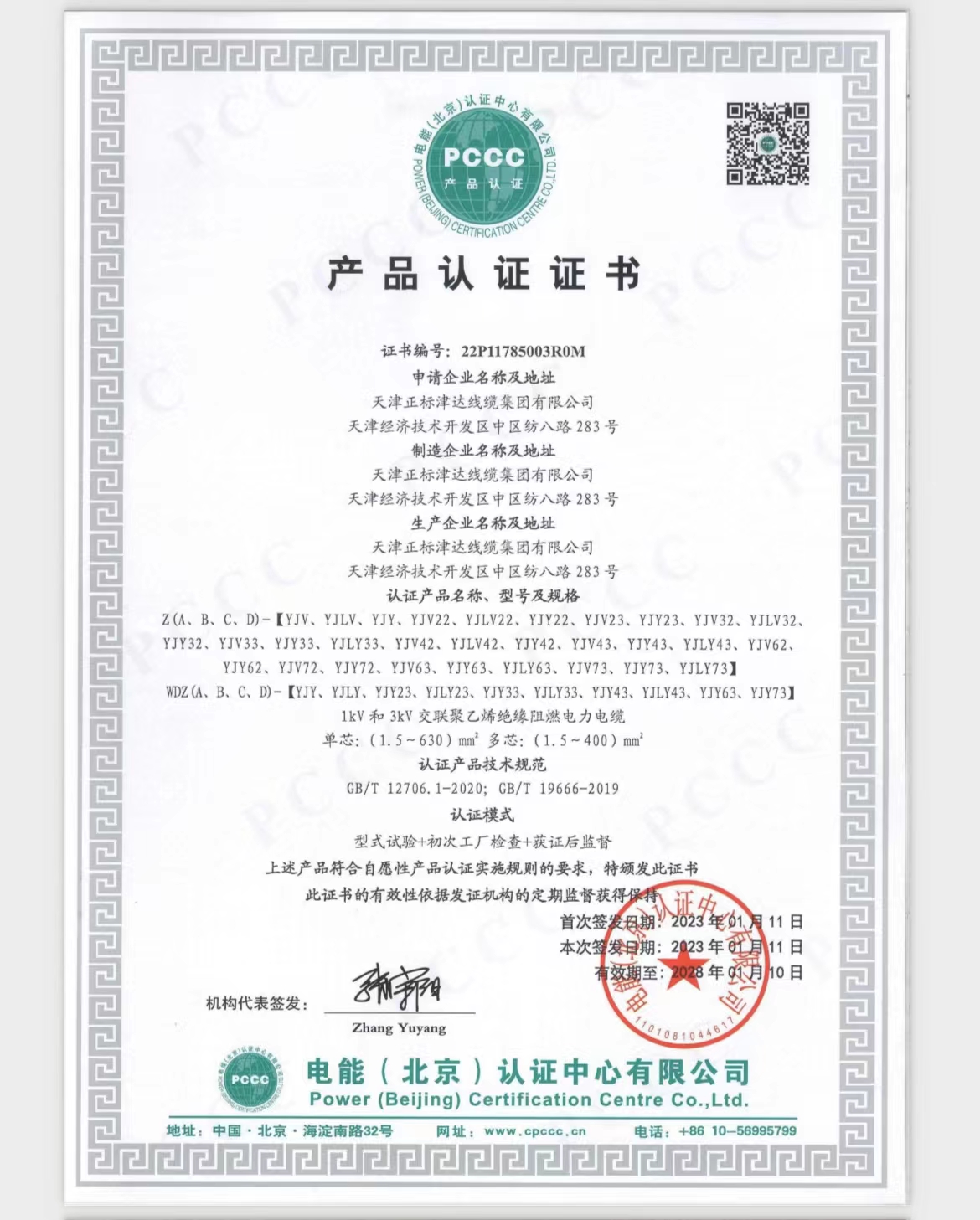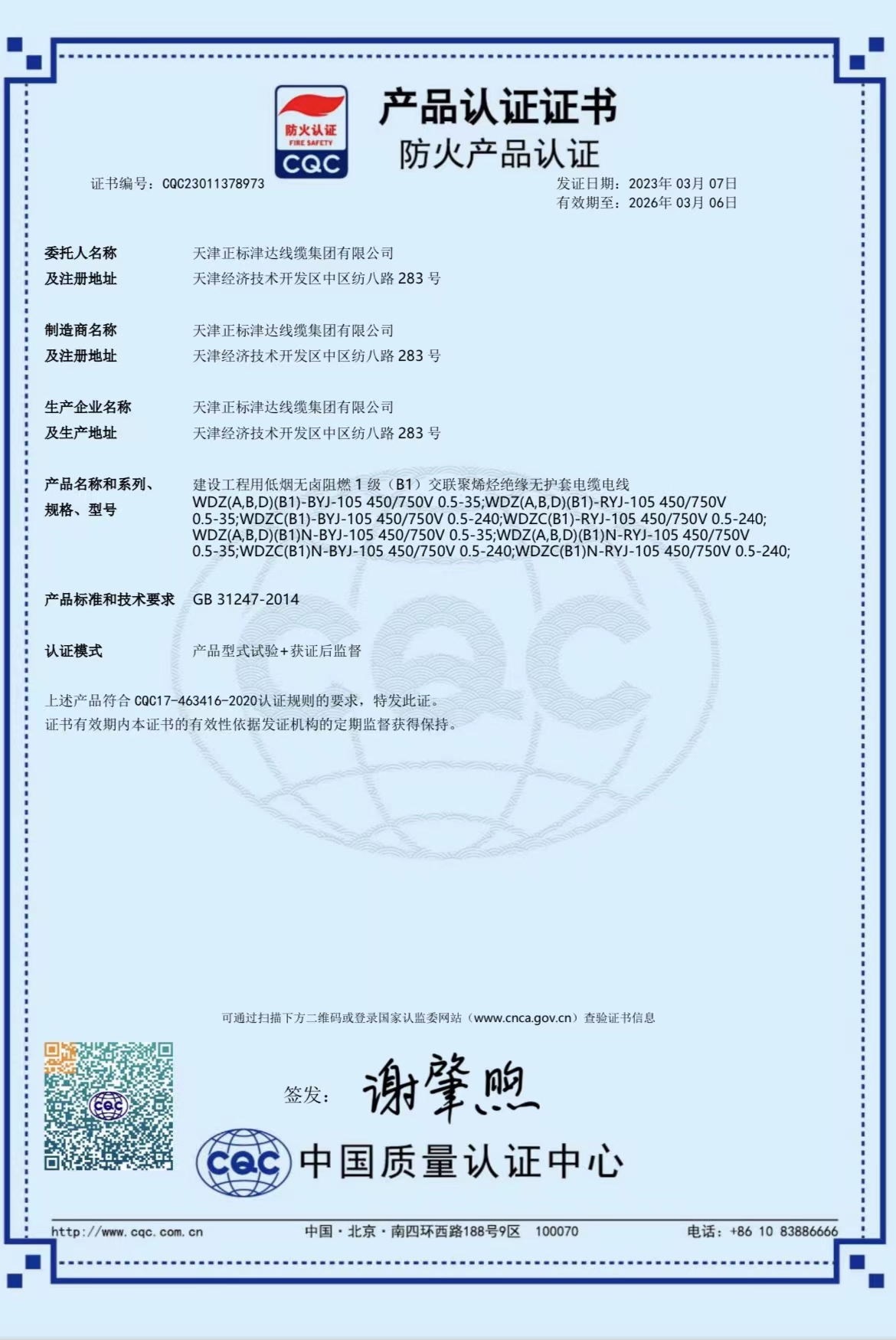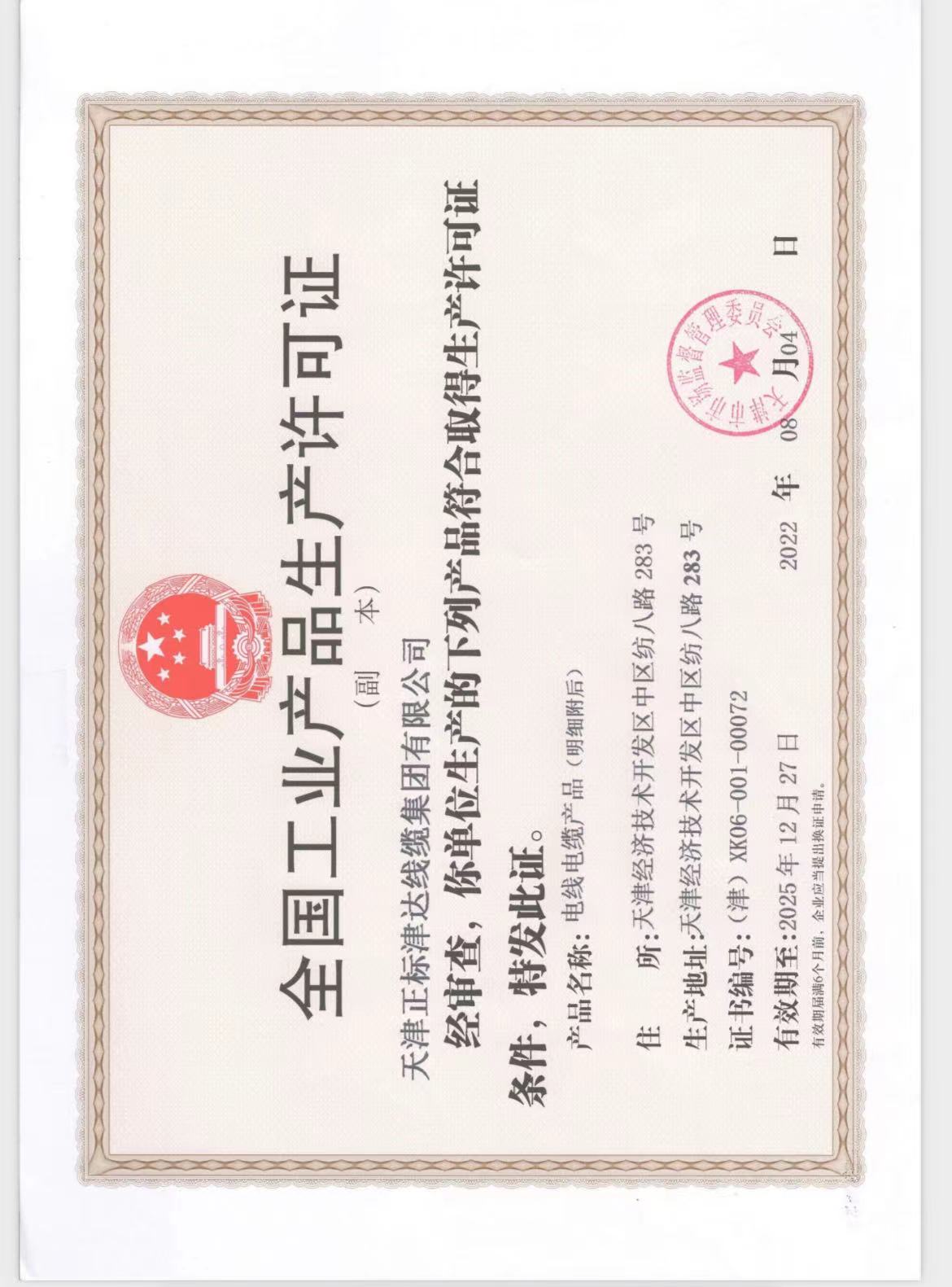 天津市津達電線電纜的案例展示正規資質,當然不負重托· honor